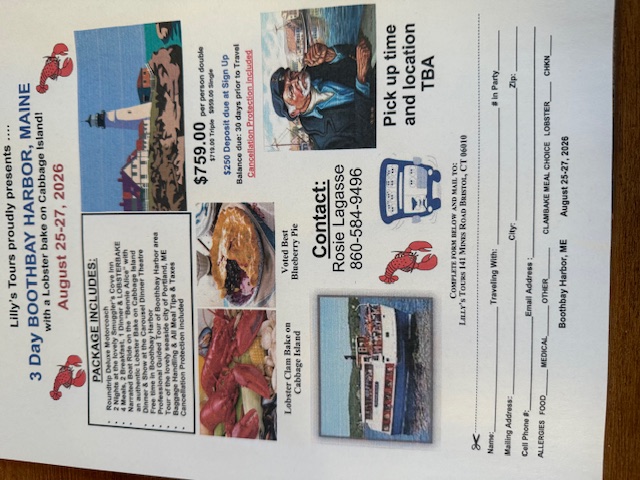 Call in or email for the trip you are interested in or just mail check to Lilly’s Tours